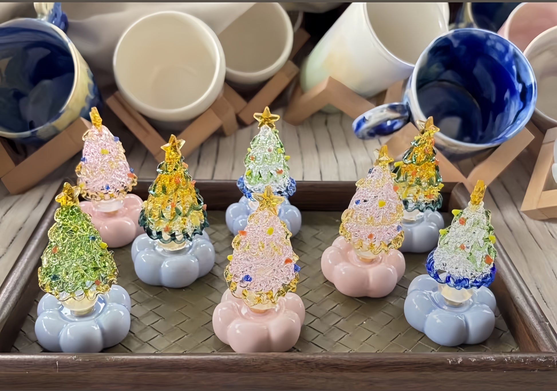 Festive Design 🎅: Featuring a classic Christmas tree shape adorned with a golden star and colorful "decorative accents," it balances playfulness and refinement. Perfect for holiday decor, it also serves as a stunning year-round display piece.
