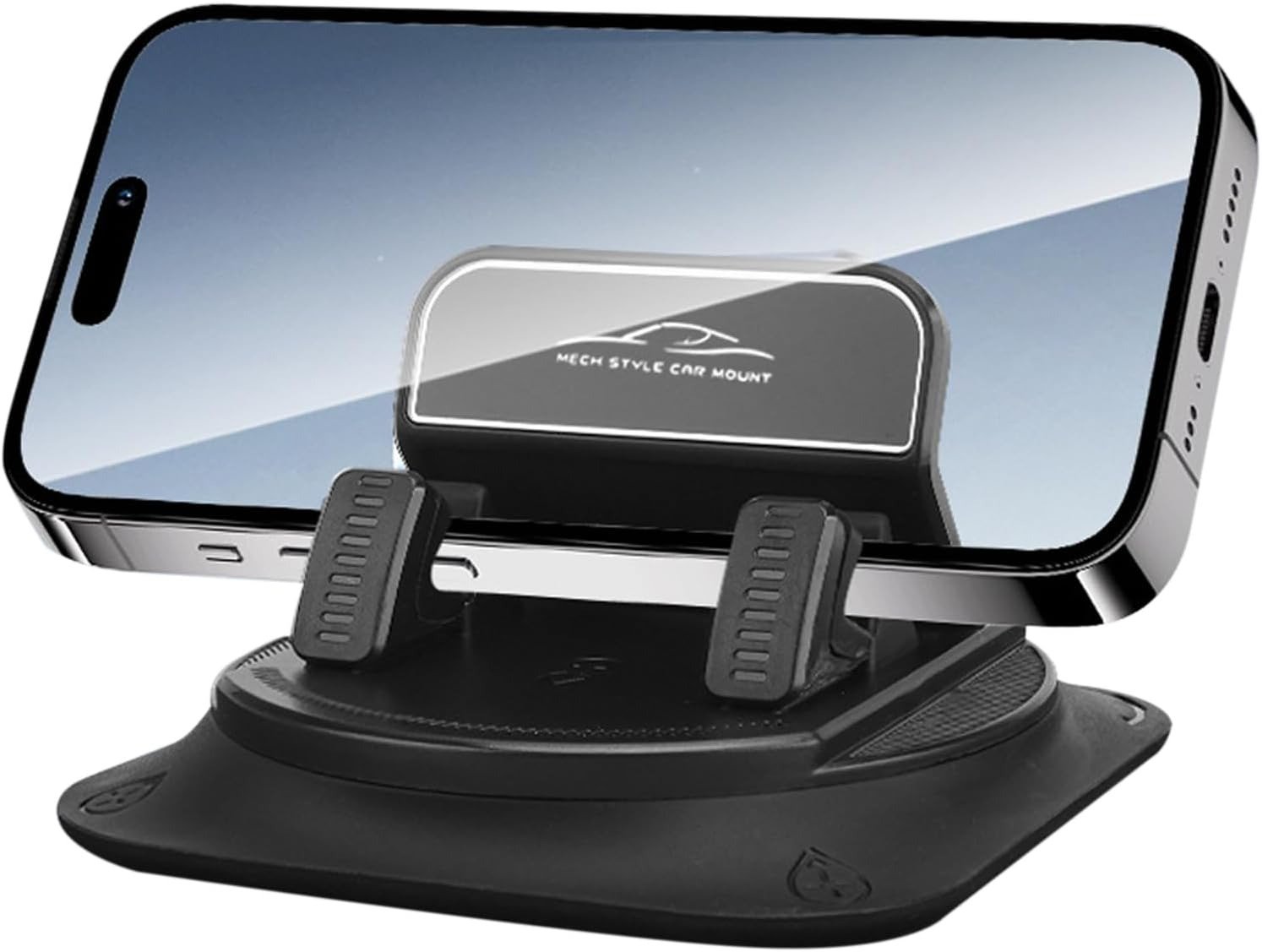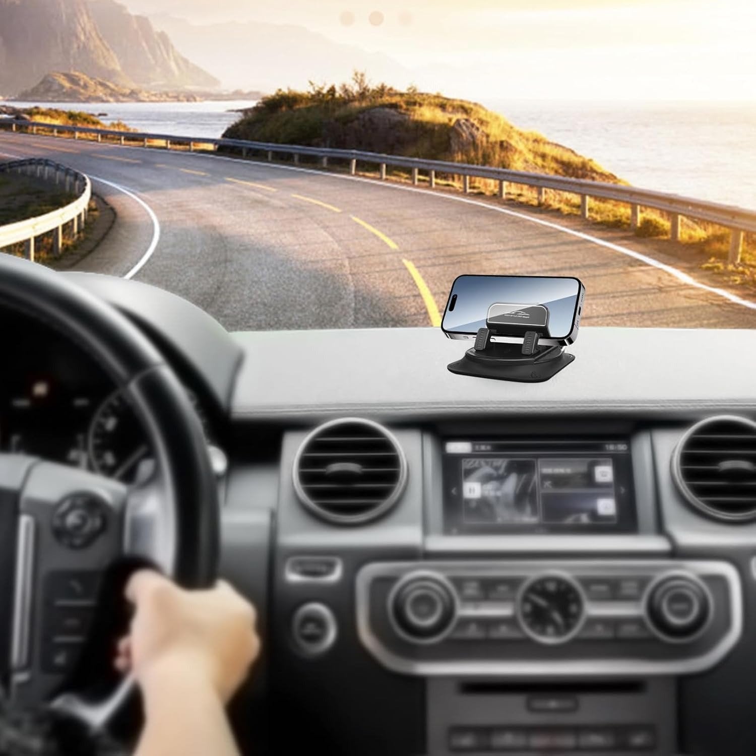 Upgrade your driving setup with this durable dashboard phone mount. The strong adhesive base ensures secure placement in sedans, minivans, trucks, and caravans. Rotate 360° to switch between landscape and portrait, offering safer hands-free use while navigating or video chatting. A must-have accessory for staying organized and keeping your phone within easy reach on every road trip.